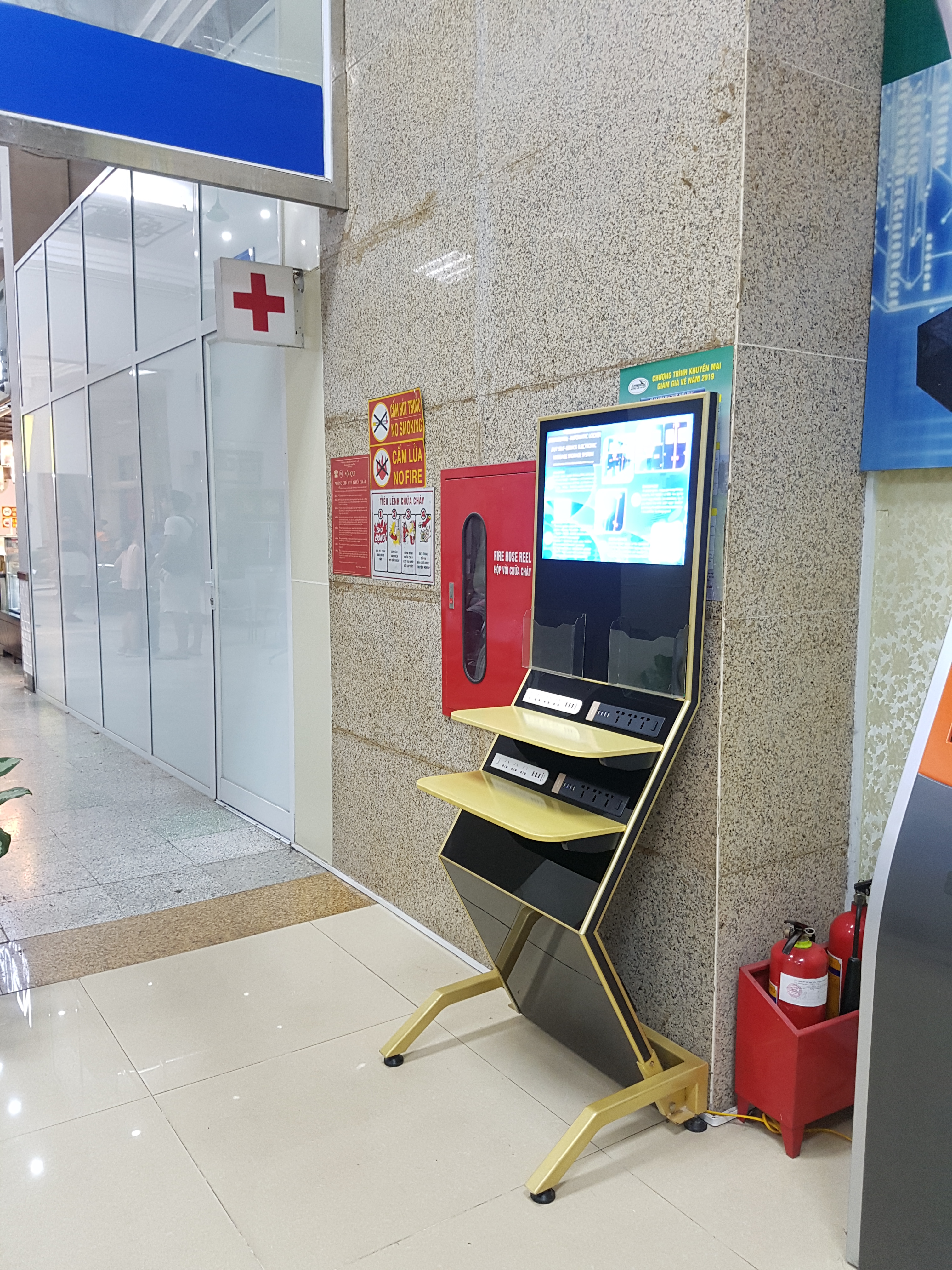 Customers using luggage storage & automatic luggage locker service at Hanoi Train Station